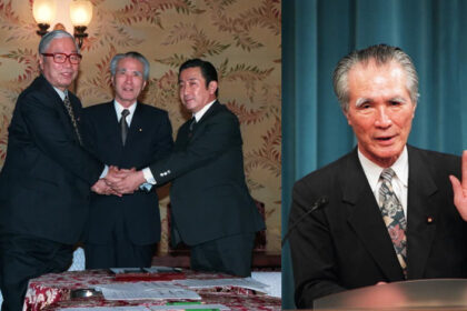 手前のブルーシートに置いてあった防具を見つけた案内人は、手振りを交えて「剣道」と説明していました。
