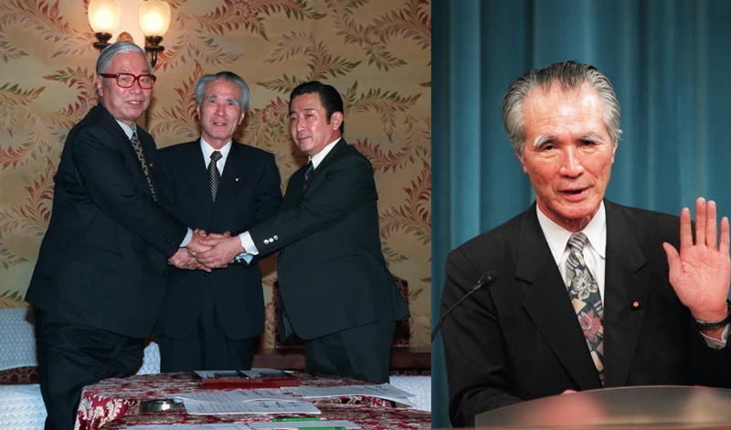 水と油の党が手を結び、村山総理大臣を誕生させた。