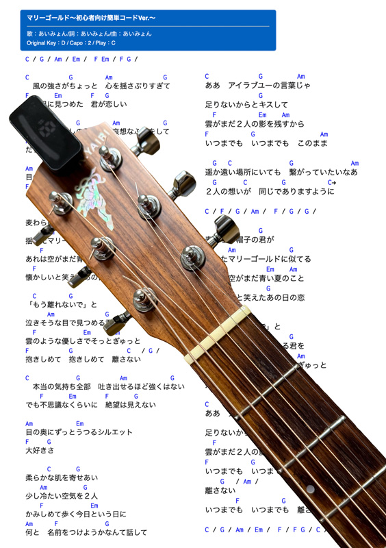 そこで私の方で、マリーゴールドのコード譜を用意しました。