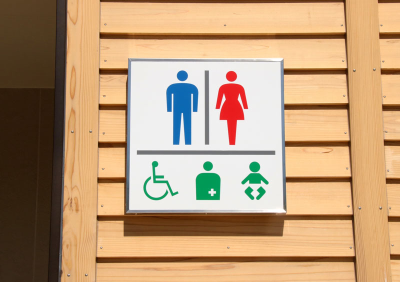 しかしそのトイレマークは、男性・女性のシルエットだけで、色分けされていない。