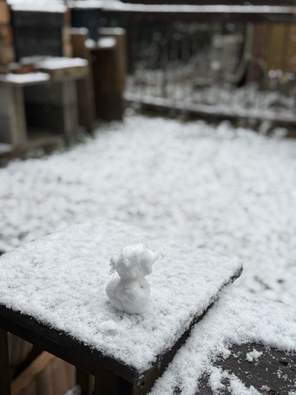 帰っていたら留守番していた次女が「雪だるま作ったの〜」と駆け寄ってきた。