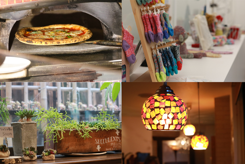 ピザ屋さんからスタートして、焼き鳥屋さん、靴下屋さん、カフェそしてパスタ屋さん。